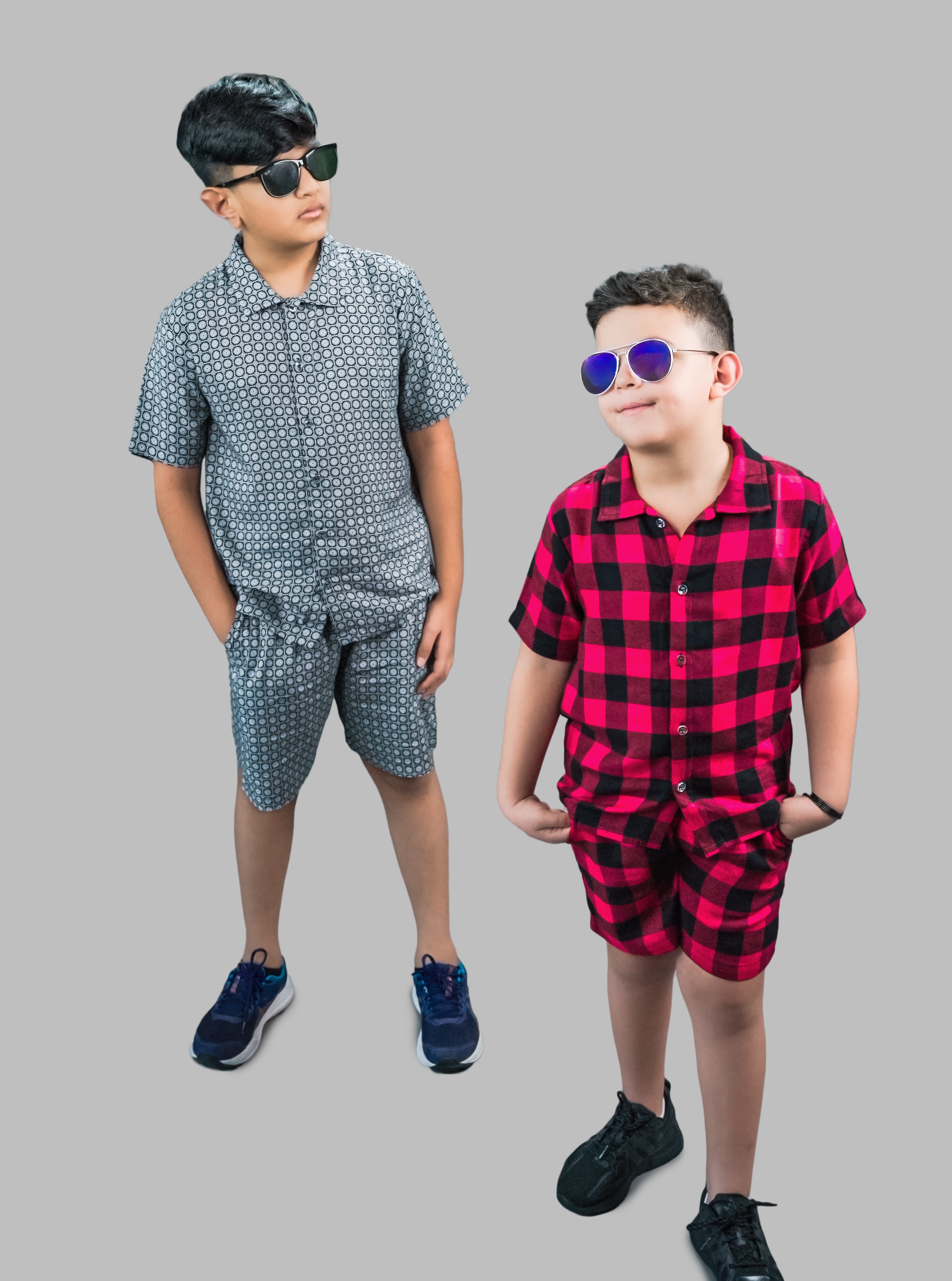 BOEIZ Red and White Checks 2-Piece Co-Ord Set Shirt & Shorts Summer Outfits for Boys