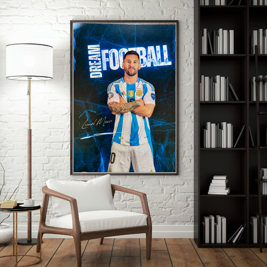 - ⚽ Iconic Messi Artwork – Showcasing the precision and elegance of the football legend in action.